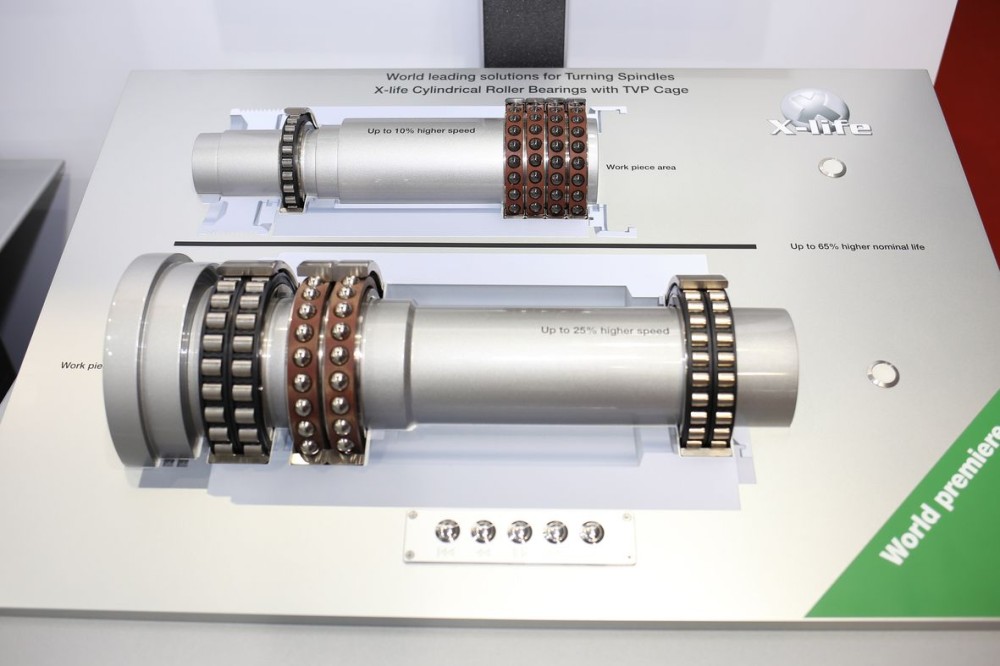 此次展會上,舍弗勒將展出全新的X-life(超長壽命)高品質軸承系列:X-life高精度圓柱滾子軸承、X-life M系列高速主軸承、X-life六列直線循環(huán)滾珠軸承和導軌組件,以及新型帶值測量系統YRTC轉臺軸承。這些新型軸承具有較高的限速度、承載能力、剛度和使用壽命,將為新一代機床創(chuàng)造較大化的價值。